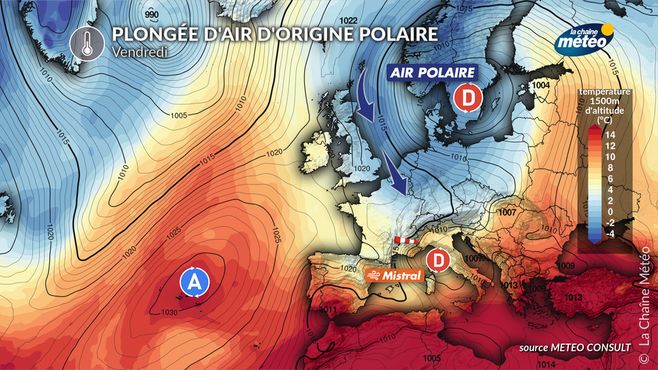 Plongée d'air d'origine polaire sur la France vendredi © lachainemeteo