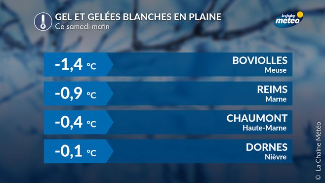 - le gel entre le Grand Est et l'Auvergne ce matin