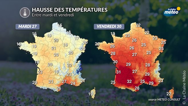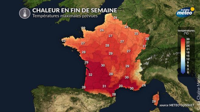 La France sera concernée par un pic de chaleur assez intense mais très rapide en fin de semaine, surtout vendredi. Dès samedi, une dégradation orageuse est attendue, et les températures rejoindront les moyennes de saison.