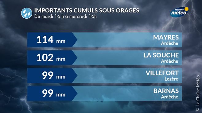 Quelques cumuls remarquables sous orages © la Chaine Météo