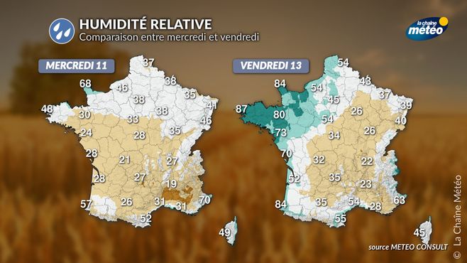 Plusieurs régions pourraient connaître un humidex dépassant les 38 à 40 en fin de semaine, notamment dans le sud-ouest, le bassin parisien et la vallée du Rhône.