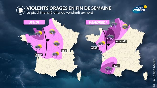Après la passage d'une première salve orageuse dans l'ouest et le nord-ouest entre mercredi soir et jeudi, une nouvelle dégradation orageuse se profile vendredi dans le nord-ouest. Cette seconde salve orageuse sera plus active que la précédente en lien avec une masse d'air plus chargée en humidité et des indices d'instabilité plus élevés.