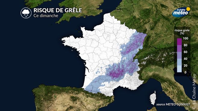 L’après-midi voit un net contraste : l’ouest retrouve un ciel plus dégagé, tandis que les orages persistent de la chaîne pyrénéenne aux frontières de l’Est. Les abords de la Méditerranée restent à l’écart de l’instabilité, conservant un temps sec et chaud.