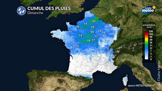 Cumul des pluies ce dimanche © lachainemeteo