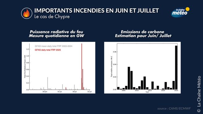 Chypre a atteint son niveau annuel cumulé d'émissions liées aux incendies le plus élevé en deux jours © La Chaîne Météo / CAMS/ECMWF