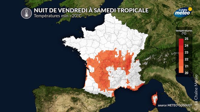 Dès jeudi, la vague de chaleur annoncée ne frappera pas seulement en journée : les températures nocturnes resteront élevées, parfois au-dessus de 20°C, notamment dans la vallée de la Garonne et la région lyonnaise. Des nuits tropicales qui pourraient déclencher une alerte canicule dans plusieurs départements.
