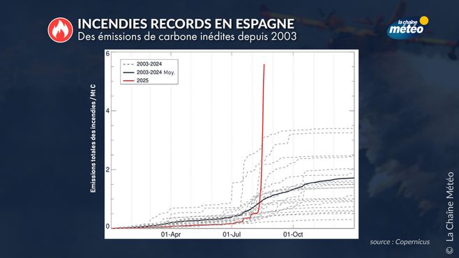 L'Espagne vit l'une des pires saison des incendies des ces dernières décennies © La Chaîne Météo / Copernicus