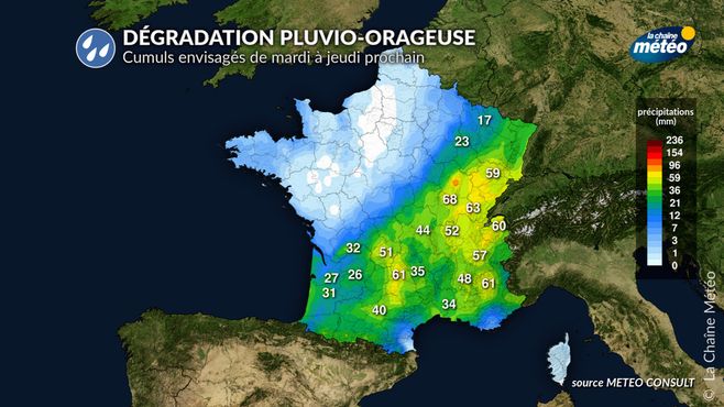 Forte dégradation pluvio-orageuse de mardi à jeudi © lachainemeteo