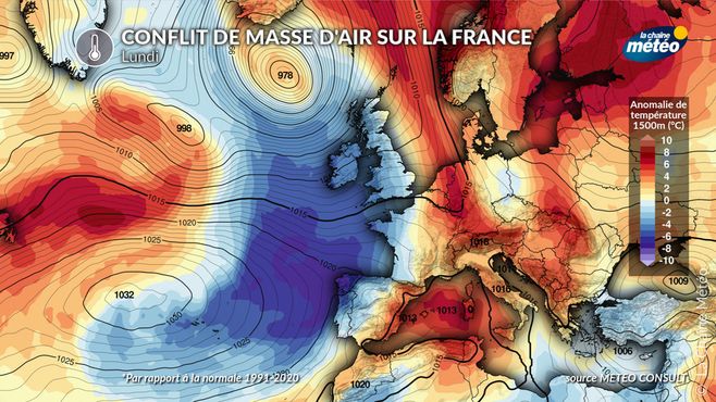 Conflit de masse d'air sur la France lundi © lachainemeteo