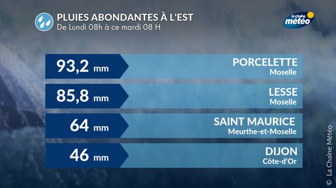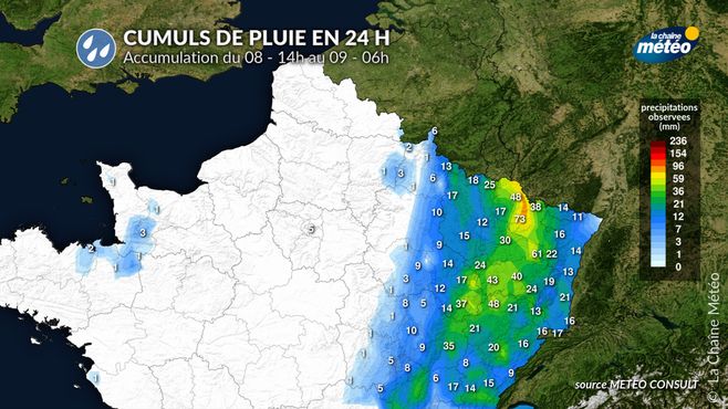 Des cumuls de pluie très abondants à l'est de la France © la Chaine Météo