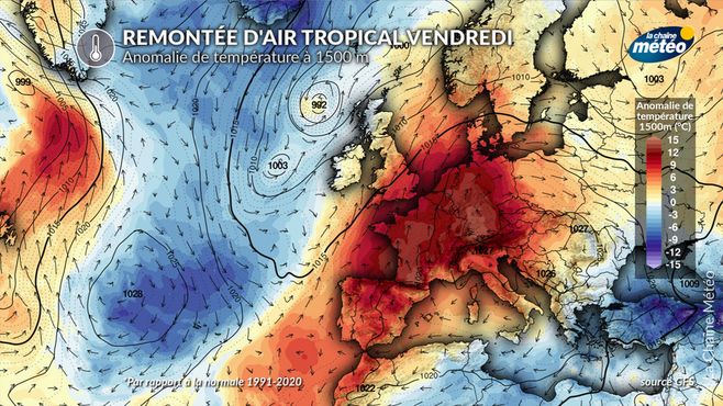 Pic de chaleur et remontée d'air subtropical ce vendredi © La Chaine Météo