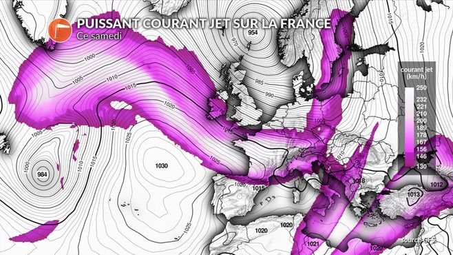 Courant-jet sur la France ce samedi © la chaine meteo / GS