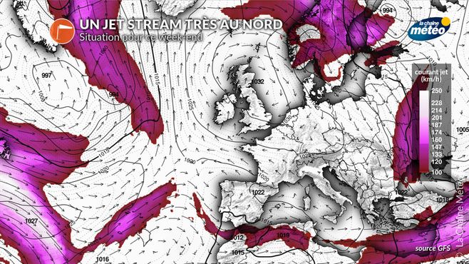 Le jet stream est dévié vers le nord, et vers le sud, isolant le dôme anticyclonique © La Chaine Météo