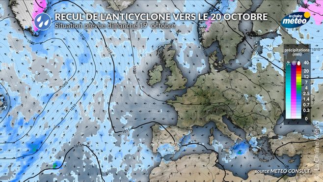 Les hautes pressions seraient encore présentes sur les iles britannique le 20 octobre © La Chaine Météo