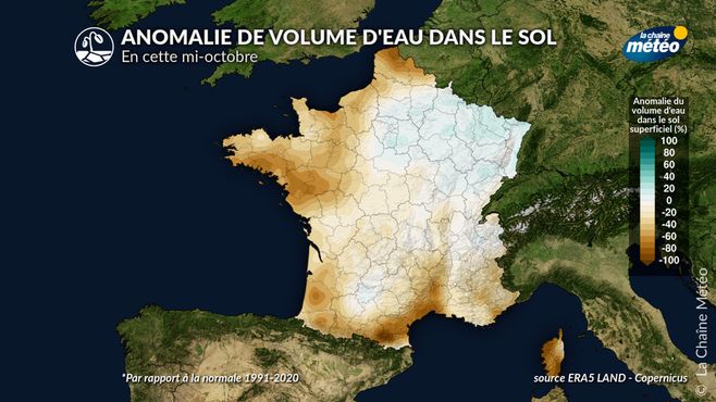 Anomalie de volume d'eau dans le sol © La Chaine Météo