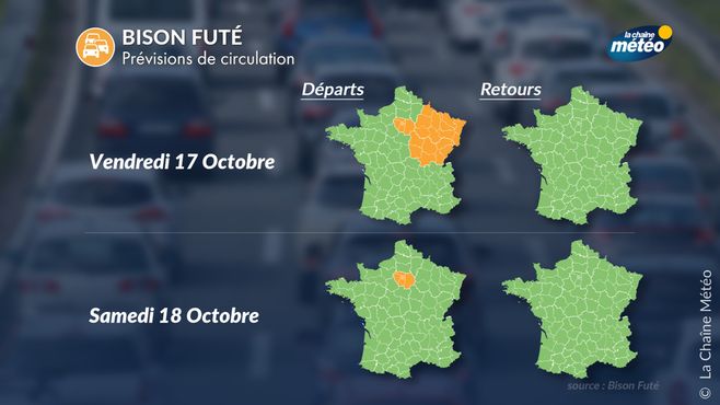 Des départs plus dense en IDF et au nord-est pour la Toussaint © La Chaîne Météo/ Bison Futé