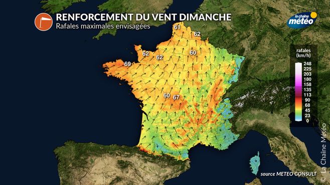 - renforcement du vent du sud avec des rafales atteignant 60 km/h