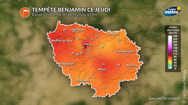 Tempête Benjamin en Île-de-France : chronologie, rafales, zones les plus exposées