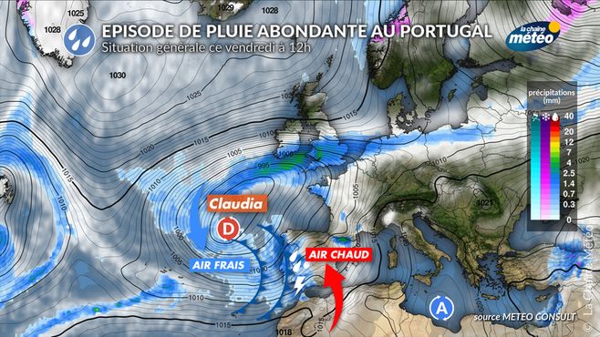 Dépression Claudia : pluies abondantes au Portugal puis en Espagne ces prochains jours