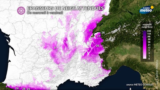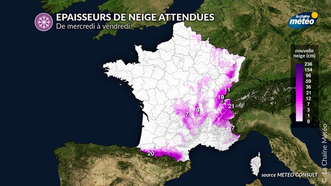 Epaisseurs de neige attendues en montagne jusqu'à vendredi © La Chaine Météo