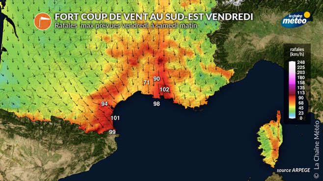 Rafales de vent attendues vendredi-samedi au sud-est © La Chaine Météo