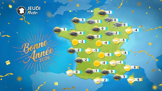 Temps attendu le matin du 1er janvier © La Chaine Météo / Météo Consult