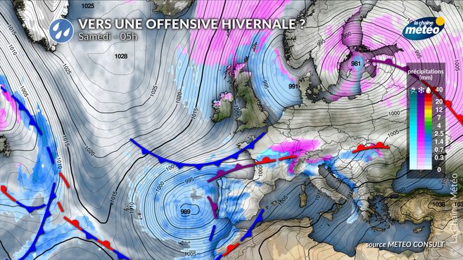 À l’inverse, le modèle européen ne modélise aucun conflit réellement actif sur la France, avec un temps froid mais sec, écartant toute neige en plaine pour le week-end. Cette situation serait liée à la non remontée de la dépression située sur la péninsule ibérique.