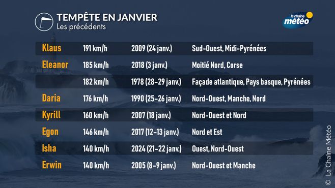 Tableau des tempêtes en janvier © LCM