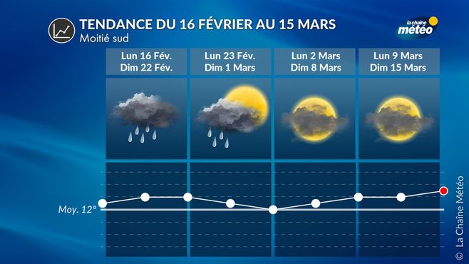 La France reste sous l'influence d'un rail dépressionnaire apportant des perturbations actives en début d'échéance. Ce temps agité et pluvieux pourrait durer jusqu'à fin février, avant le retour d'une possible amélioration début mars, avec un temps plus calme et doux à la clé.