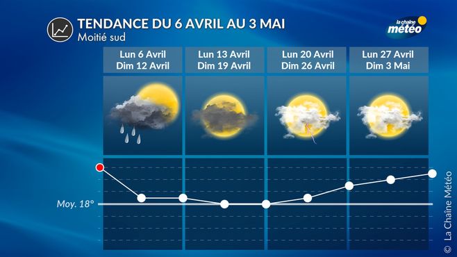 Au total, malgré des incursions perturbées ponctuelles, ce mois d'avril devrait présenter des précipitations relativement déficitaires, surtout sur la moitié sud de notre pays, avec des températures relativement proches des moyennes de saison. L’ensemble s’inscrit dans un printemps globalement de saison à légèrement doux, sans anomalie chaude durable marquée.