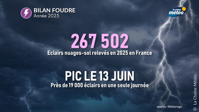 Le bilan des orages et du foudroiement en France pour l'année 2025 présente une faible saison orageuse, une des plus faibles depuis le début des relevés, malgré quelques épisodes remarquables, selon les chiffres communiqués par notre partenaire Météorage.