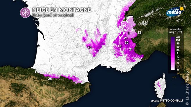 Neige en montagne entre jeudi et vendredi © Meteo Consult / La Chaine Météo