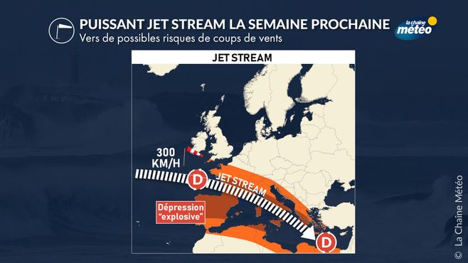 La semaine prochaine s’annonce sous haute surveillance. Le courant-jet, particulièrement puissant et circulant à des latitudes basses pour la saison, va structurer une situation propice à des intempéries marquées, et un risque d'épisodes de vent fort.