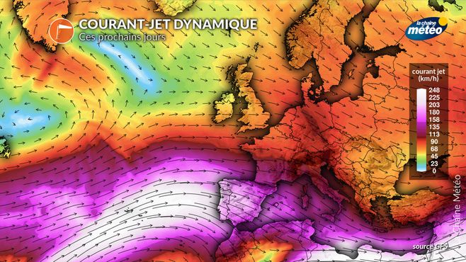 Le jet stream, couloir de vents forts, circule très bas en latitude © La Chaine Météo