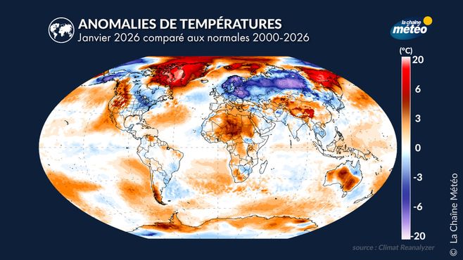 Le point commun réside dans un jet-stream très ondulant et fréquemment positionné au sud de sa latitude habituelle, repoussé par les hautes pressions nordiques (Arctique et Scandinavie). Cette ondulation a favorisé à la fois les plongées d’air froid vers les moyennes latitudes et la canalisation des dépressions atlantiques vers le sud de l’Europe. Ce type de régime ralentit la circulation atmosphérique, rendant les situations météo plus persistantes, mais pas moins violentes. Les cartes de réanalyses montrent un mois de janvier 2026 plus froid que la moyenne récente aux moyennes latitudes (Amérique du Nord, Eurasie), en même temps que les pressions étaient anormalement basses entre l'Amérique du Nord et l'Europe de l'Ouest. C'est une situation "inversée" par rapport à l'habitude.