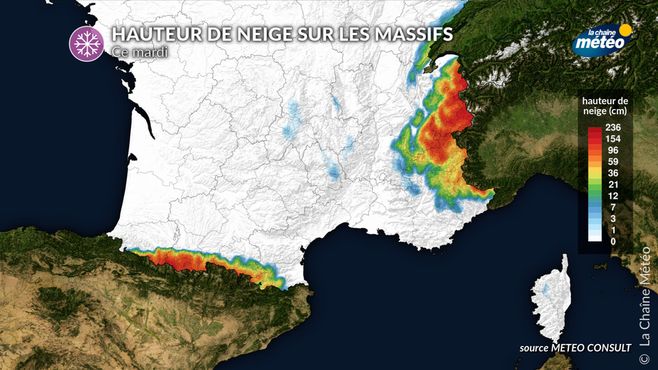 Hauteur de neige sur les massifs © La Chaine Météo / Météo Consult
