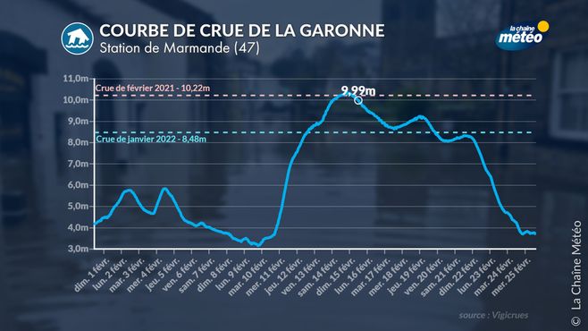 Courbe de crue de la Garonne © La Chaine Météo / Météo Consult