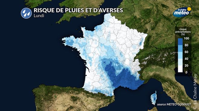 Risque de pluies et d'averses lundi © lachainemeteo