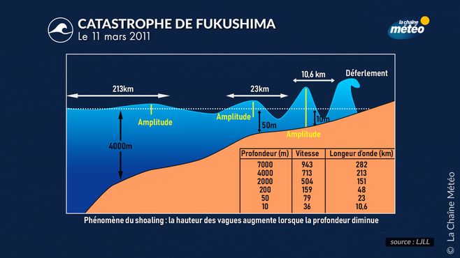 Ce phénomène, survenu environ 50 minutes après la secousse initiale, a permis à la vague de franchir avec une force décuplée les digues de protection de la centrale, qui n'étaient pas dimensionnées pour un tel relief sous-marin.
