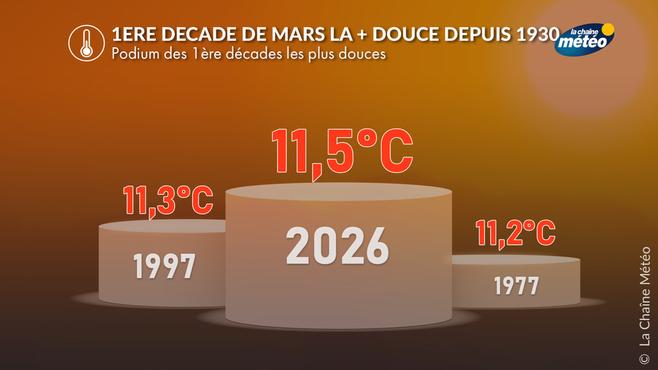 La première décade de mars 2026 restera dans les annales météorologiques. Jamais une telle douceur n’avait été observée à cette période en France. Cette anomalie thermique s’explique par un flux de sud durable faisant remonter de l'air d'origine subtropicale sur la France.
