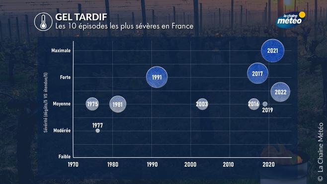 Ce paradoxe est visible depuis de nombreuses années, comme en témoignent ci-dessous les 10 épisodes de gel tardif les plus marquants en France, classés par ordre décroissant de sévérité.