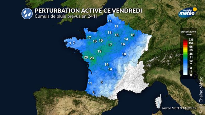 Cumuls de pluie prévus pour ce vendredi © La Chaine Météo