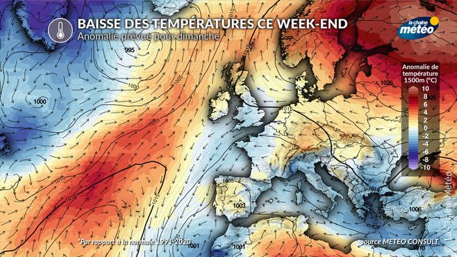 Anomalie de la masse d'air prévue pour dimanche © La Chaine Météo