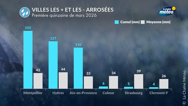 Les villes les + et les - arrosés de la première quinzaine de mars 2026 © Meteo Consult / La Chaine Météo