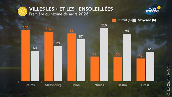 Villes les + et les - ensoleillées du 1er au 15 mars © Meteo Consult / La Chaine Météo