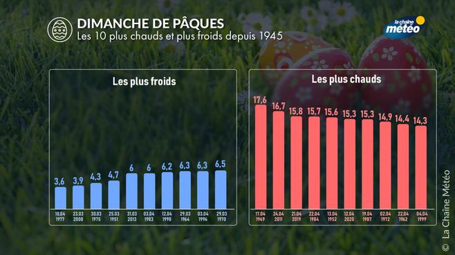 Même lorsque Pâques tombe à des dates proches, les différences de température restent importantes.