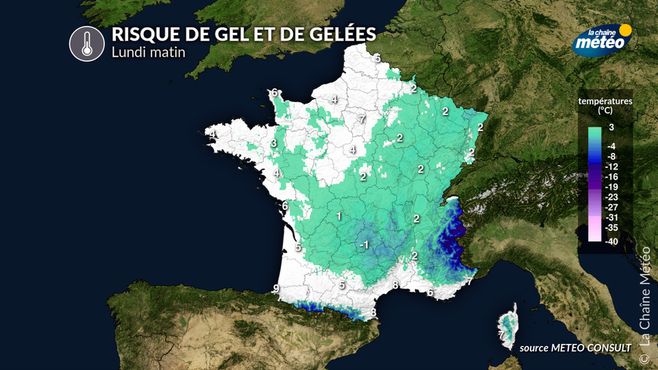 - des brouillards le matin près de la Manche, en plaine d'Aquitaine et sur le Centre-Est