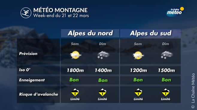 Après les conditions météo ensoleillées et printanières de la semaine en montagne, la météo devient plus mitigée ce week-end avec une dégradation attendue dimanche sur les Alpes avec le retour de quelques chutes de neige dès 1200 à 1500 m.