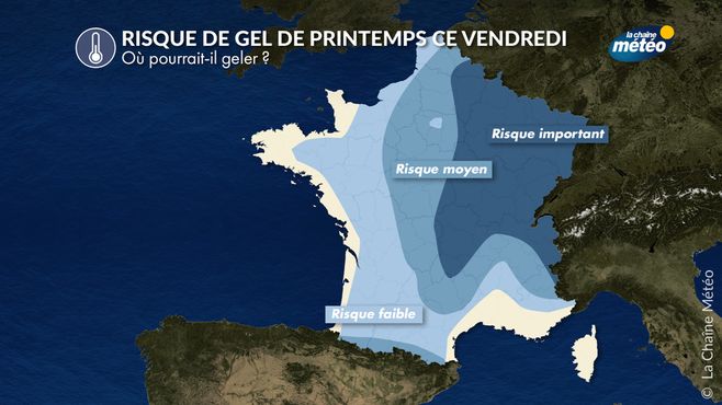 Après un début de semaine ensoleillé et printanier, un changement de temps est attendu dès mercredi, avec le retour de températures en dessous des normales de saison. Par conséquent, un potentiel risque de gel de printemps existe en France. Vendredi est la journée la plus à risque.