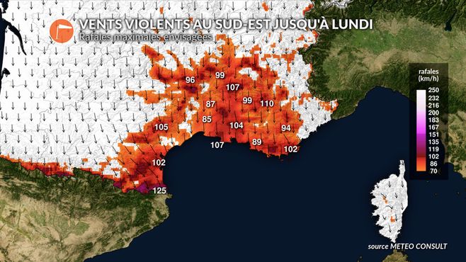 - et le vent souffle violemment près de la Méditerranée à près de 100 km/h